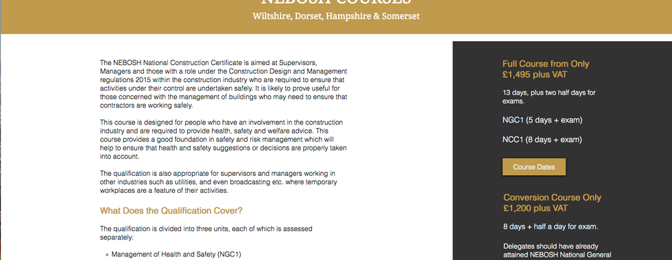 This 27-page website has been designed to market the clients Health and Safety classes available both in the classroom and online.